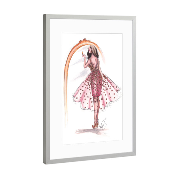 Poster mit Rahmen Silber "Getting Ready" artboxONE - Fashion - Fashion illustration,Mode,Makeup,Style,Dress,Kleid,Spiegel,Mirror,Going out,Feiern
