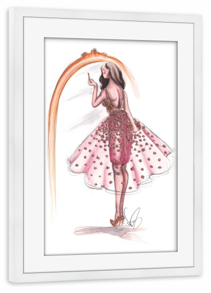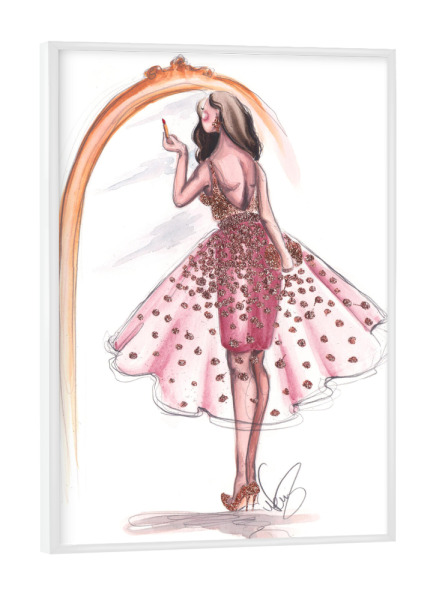 Poster mit weißem Rahmen "Getting Ready" artboxONE - Fashion - Fashion illustration,Mode,Makeup,Style,Dress,Kleid,Spiegel,Mirror,Going out,Feiern