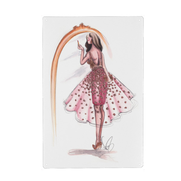 Metall Poster "Getting Ready" artboxONE - Fashion - Fashion illustration,Mode,Makeup,Style,Dress,Kleid,Spiegel,Mirror,Going out,Feiern - Blechschild