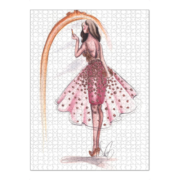 artboxONE Puzzle "Getting Ready" artboxONE - Fashion - Fashion illustration,Mode,Makeup,Style,Dress,Kleid,Spiegel,Mirror,Going out,Feiern