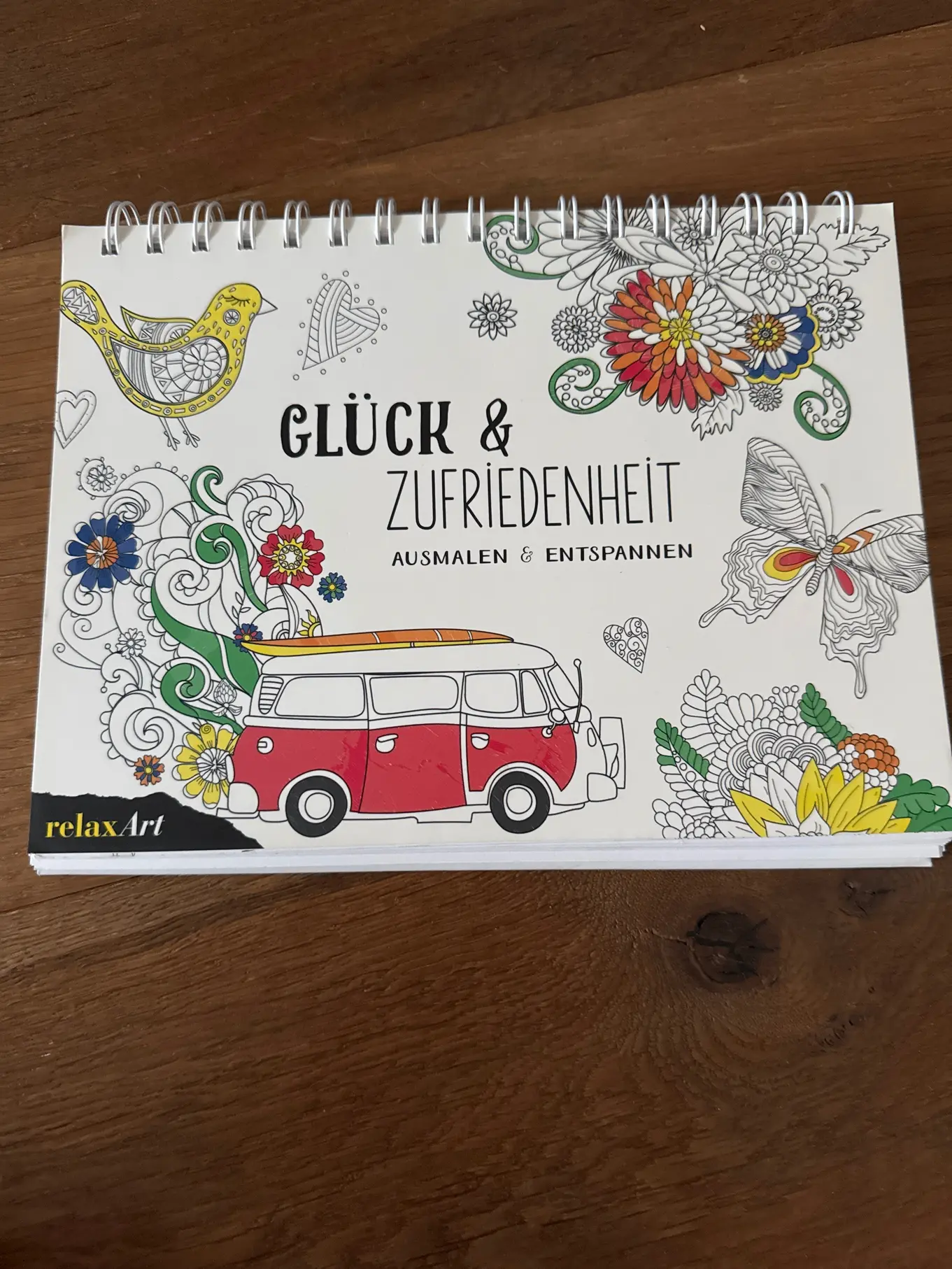 RELAXART Malbuch Glück Zufriedenheit Ausmalen Erwachsene Retro Blumen