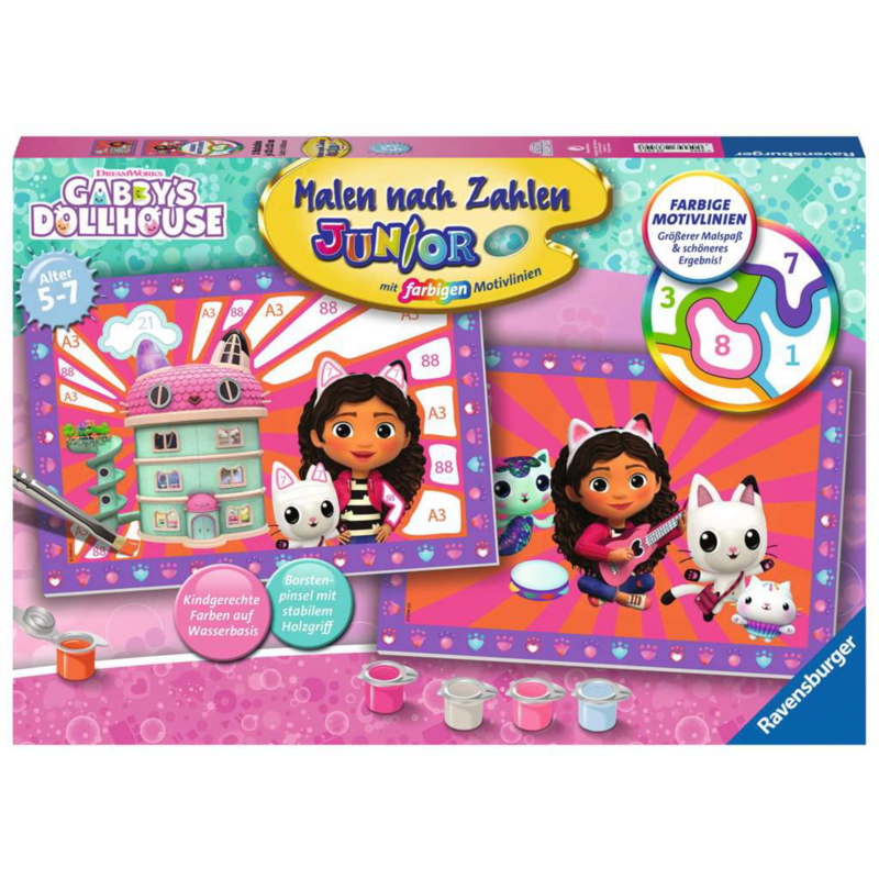 Ravensburger Malen nach Zahlen Junior - DreamWorks Gabby's Dollhouse, 2 Motive