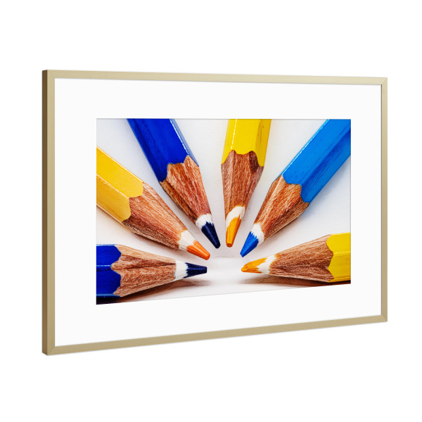 Poster mit Rahmen Gold "Bunte Buntstifte" artboxONE - Geometrie - Buntstifte,Malstifte,Bleistifte,Stillleben,Stilllife,Stifte,Bunt,Colorful