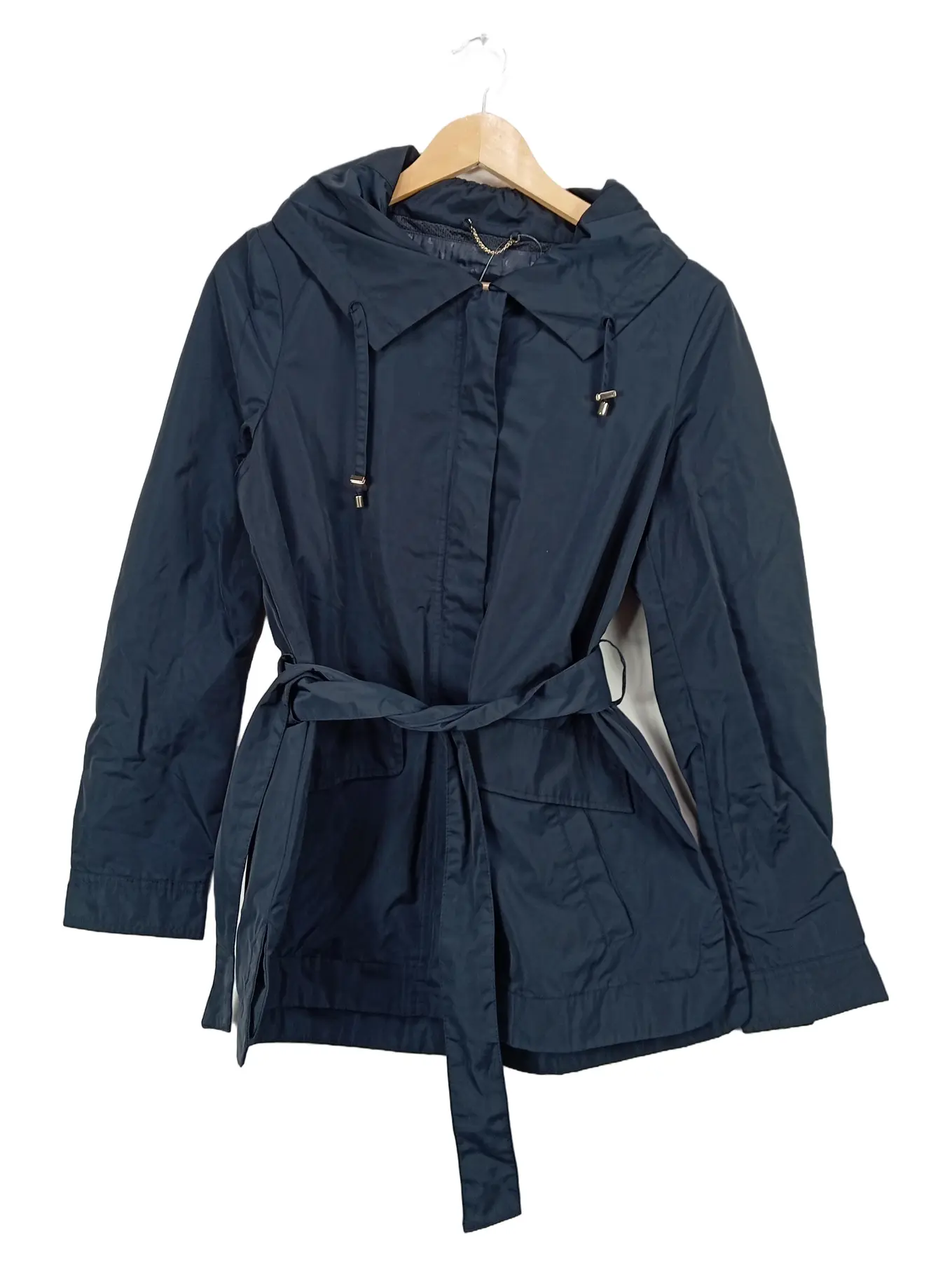 GEOX Damen Jacke Parka Mantel Gr. 36/S Blau Kapuze Gürtel Outdoor Respira