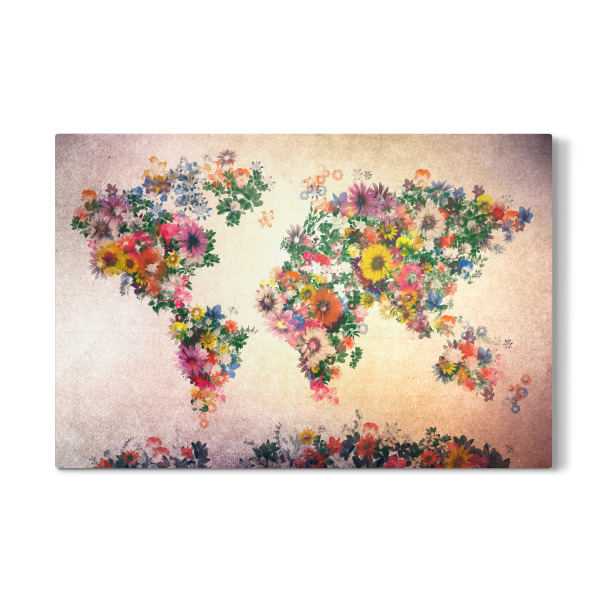 Alu-Dibond "World map floral 3" 30x20 cm artboxONE
