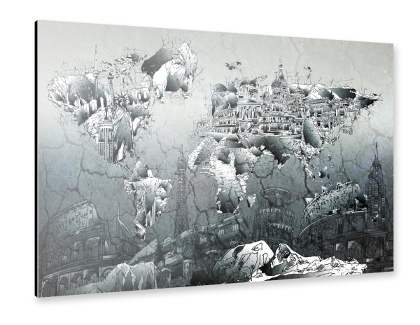 Alu-Dibond "World map landmarks collage 8" 30x20 cm artboxONE