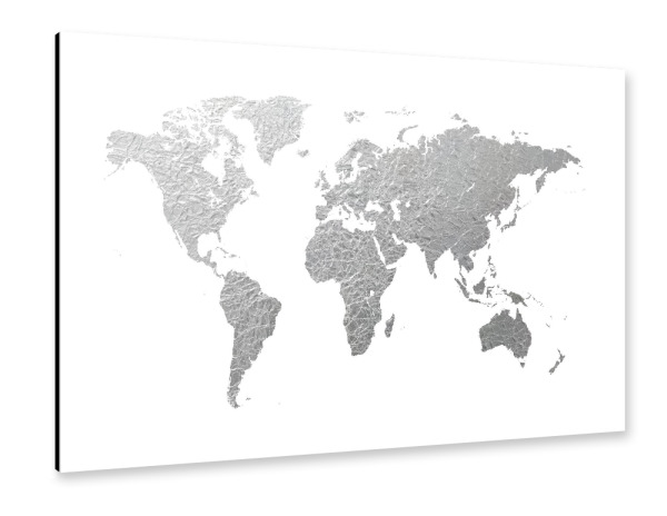 Alu-Dibond "World Map Silver Foil" 30x20 cm artboxONE