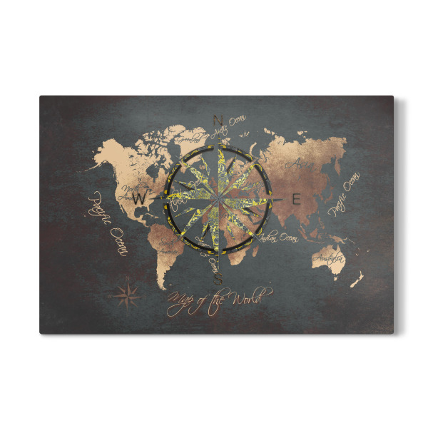 Italienischer Leinwand Leinwandbild - World Map: Beautiful World 60x40 cm Karten k-A-0207-b-d