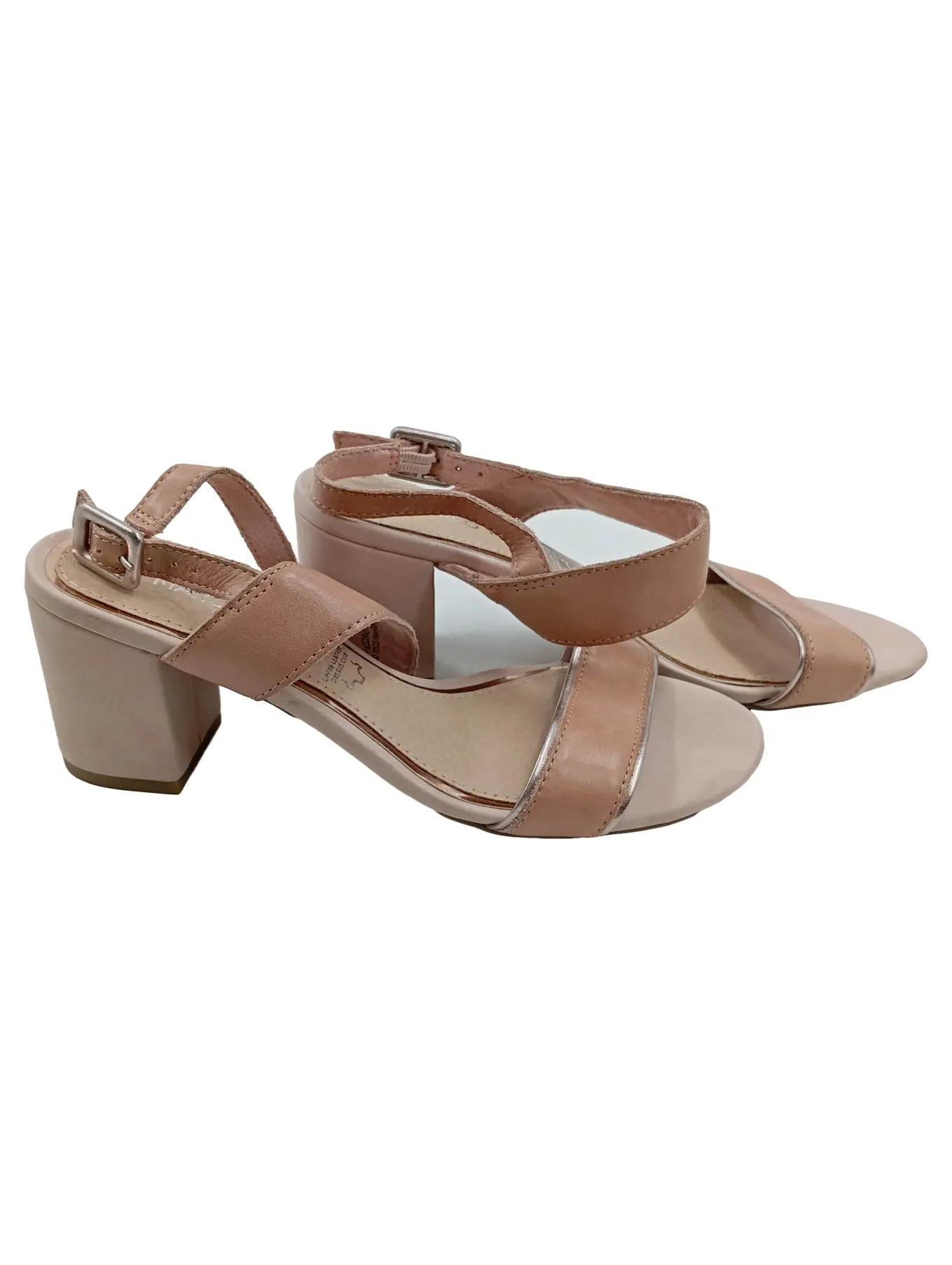 MARCO TOZZI Damen Sandaletten Gr. 38 Beige Leder Blockabsatz Elegant