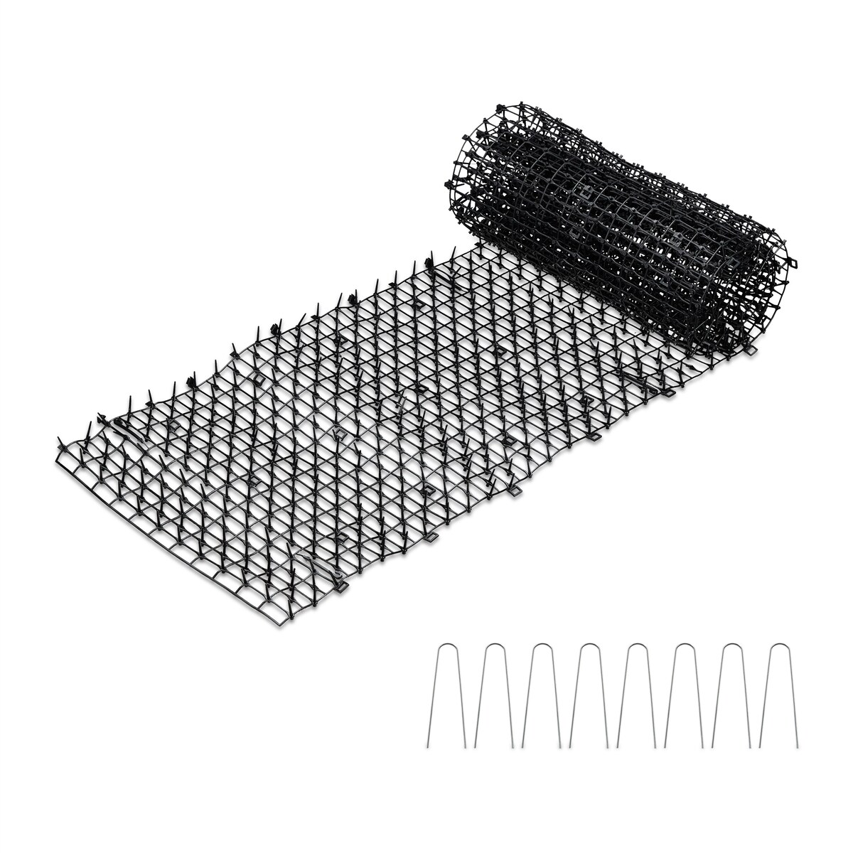 Relaxdays Dornengitter, Marder- & Katzenabwehr, BxT: 200 x 30 cm, Schutz für Beete & Pflanzen, mit 8 Erdankern, schwarz