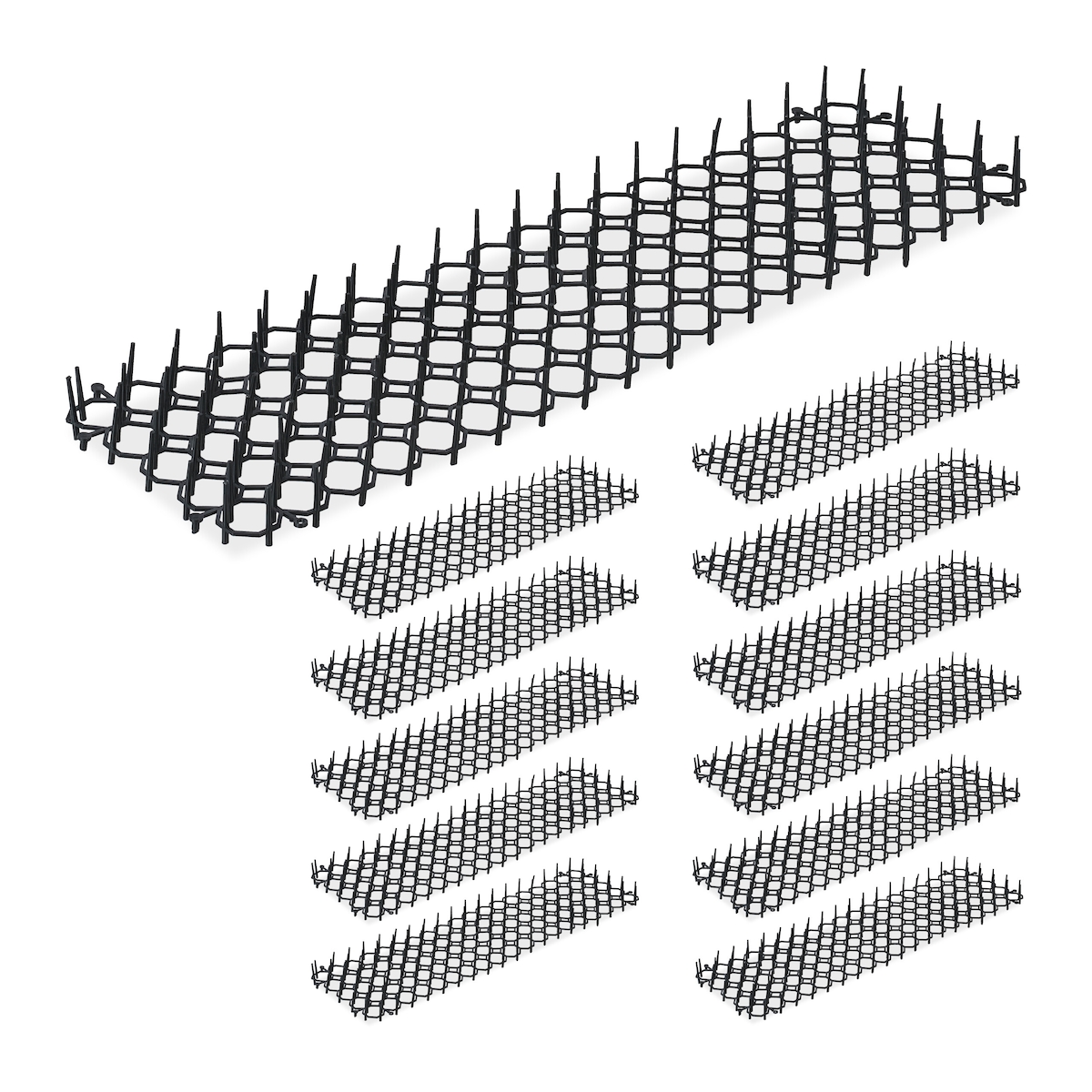 Relaxdays Dornengitter, 12er Set, Marder- & Katzenabwehr, Schutz für Beete, Pflanzen, Kunststoff, Stachelmatte, schwarz