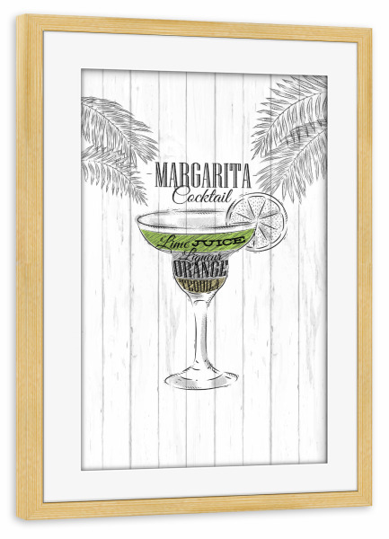 Poster mit Rahmen weiß "Margarita Cocktail Wood" artboxONE - Essen & Trinken / Alkohol - Cocktail,Glass,Bar,Alcohol,Party,Margarita