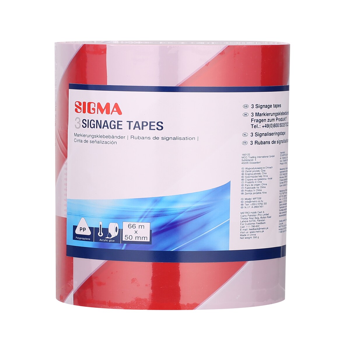 SIGMA Markierungsklebeband, 50 mm x 66 m, rot/weiß, 3 Stück