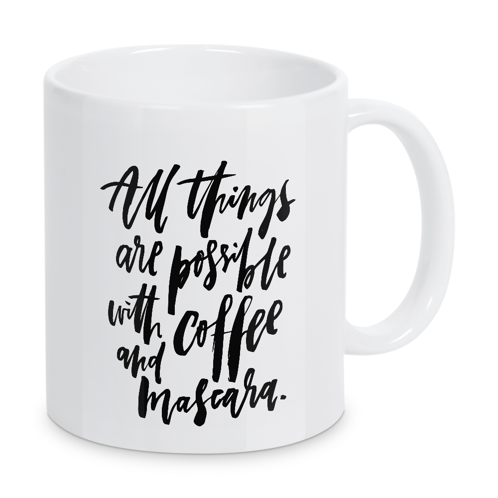 Tasse "All Things Possible Coffee&Mascara" artboxONE - Typografie,Essen & Trinken,Schwarzweiß,Fashion,Lustig