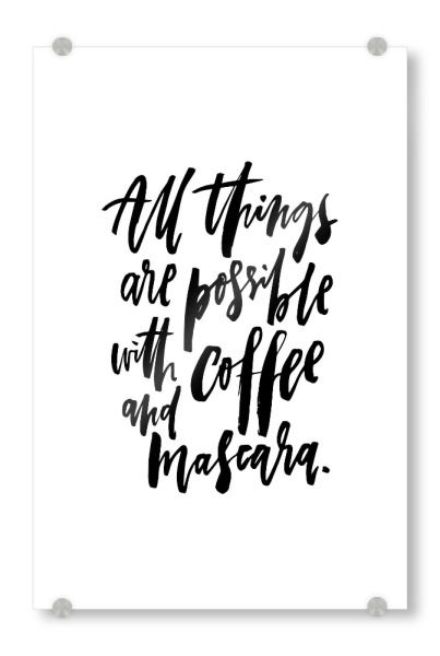 Acrylglasbild "All Things Possible Coffee&Mascara" artboxONE - Typografie,Essen & Trinken,Schwarzweiß,Fashion,Lustig
