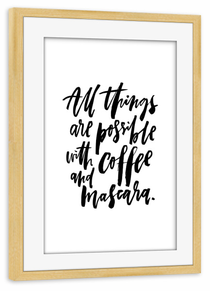 Poster mit Rahmen kiefer "All Things Possible Coffee&Mascara" artboxONE - Typografie,Essen & Trinken,Schwarzweiß,Fashion,Lustig