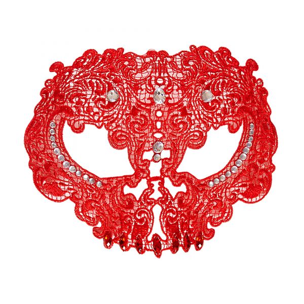 Maske Skull aus roter Spitze mit Strass und Edelsteinen, - Widmann