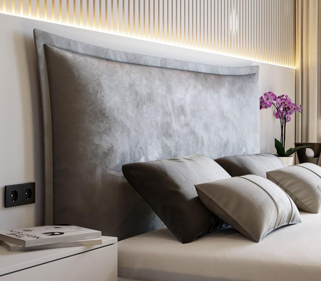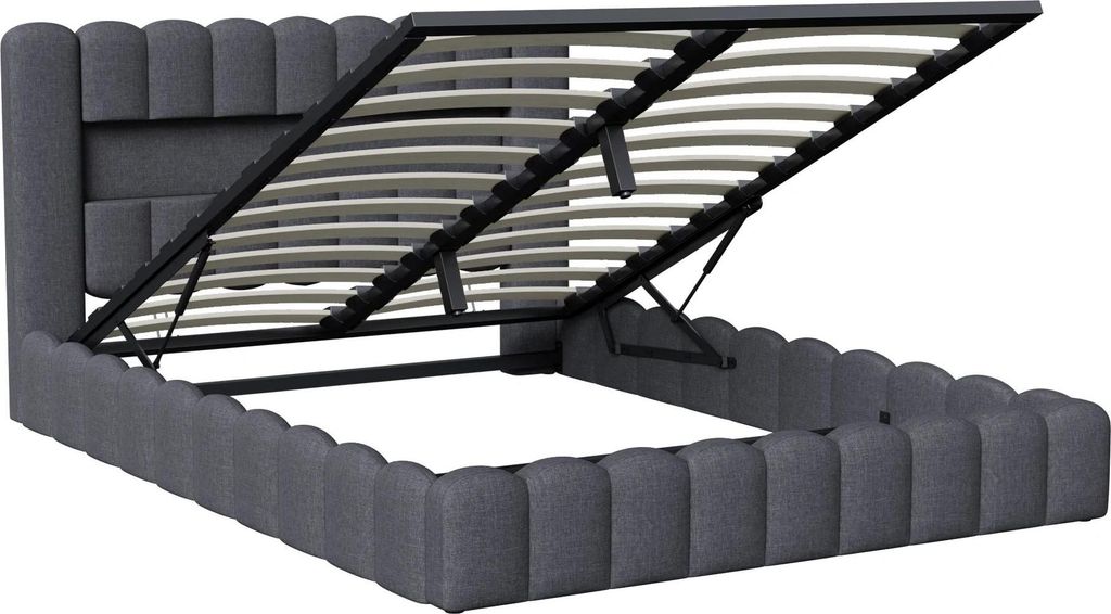 Polsterbett Sofia 140x200 cm mit Bettkasten – Samt Velvet Piano 15 Dunkelgrau, weiches Kopfteil mit Kissenoptik, Stauraum & VISCO Matratze