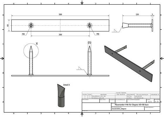 Euroline Maueranker verstellbar Edelstahl 165-205mm