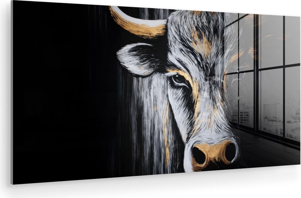 MuchoWow Glasbilder - Bilder auf Wandbild - Foto auf Glas Stier - Hörner - Maulkorb - Gold 80x40 cm Wanddekoration aus Glas - Acrylglasbild - Acry...