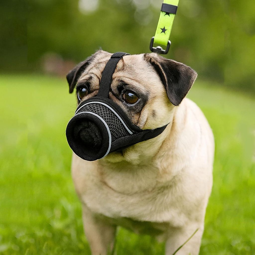Maulkorb für Hunde mit kurzer Schnauze - Mit verstellbarem, atmungsaktivem Mesh-Kopfband - Verhindert Beißen beim Fressen - Weicher Mesh-Hundemau...