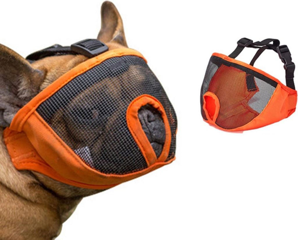 INF Atmungsaktiver Maulkorb für Bulldoggen: Anti-Biss Maske für Kurzschnauzer Orange S
