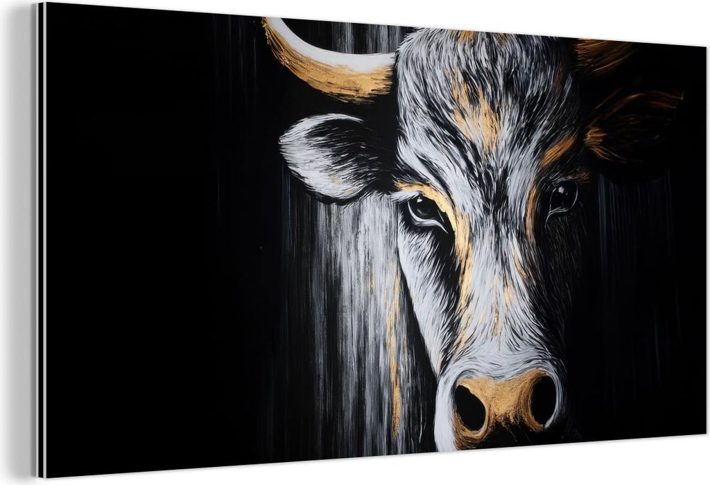 MuchoWow Wanddekoration Metall Metallbild Wandkunst 80x40 cm Stier - Hörner - Maulkorb - Gold MuchoWow Aluminium Gemälde - Wanddekoration - Alubild