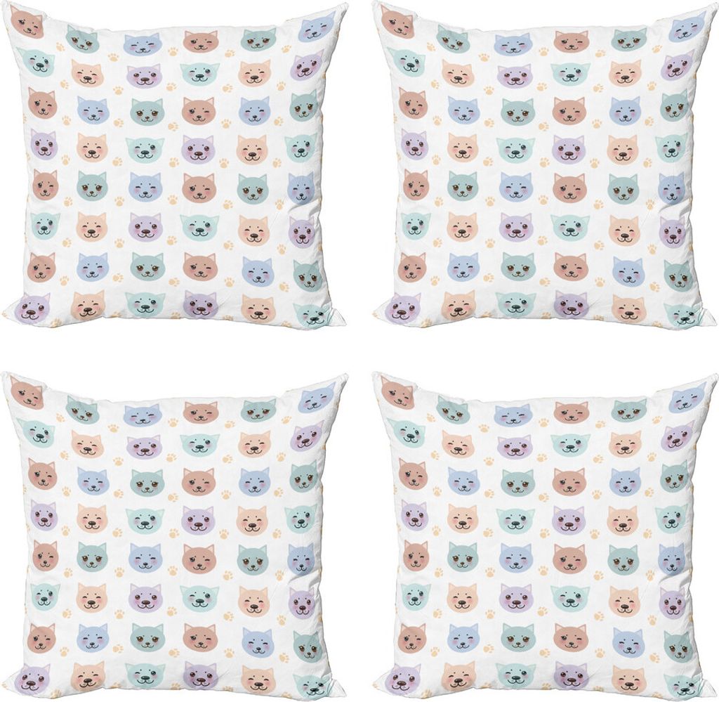 ABAKUHAUS Katze Kissenbezug Set (4 Stück), Lächelnde Katze Maulkorb Cartoon, Moderner Doppelseitiger Digitaldruck, 45 cm x 45 cm, Mehrfarbig