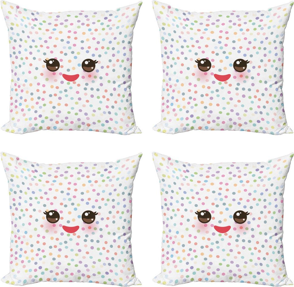 ABAKUHAUS Wimper Kissenbezug Set (4 Stück), Kawaii Lustige Maulkorb, Moderner Doppelseitiger Digitaldruck, 45 cm x 45 cm, Mehrfarbig