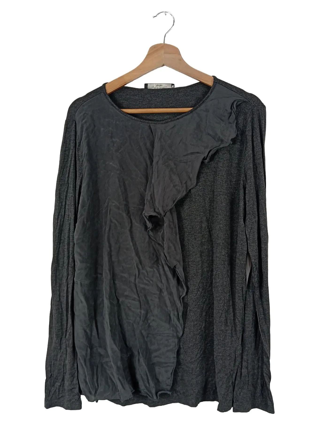 WEEKEND MAX MARA Damen Langarmshirt Grau Gr. 42/XL mit Rüschen