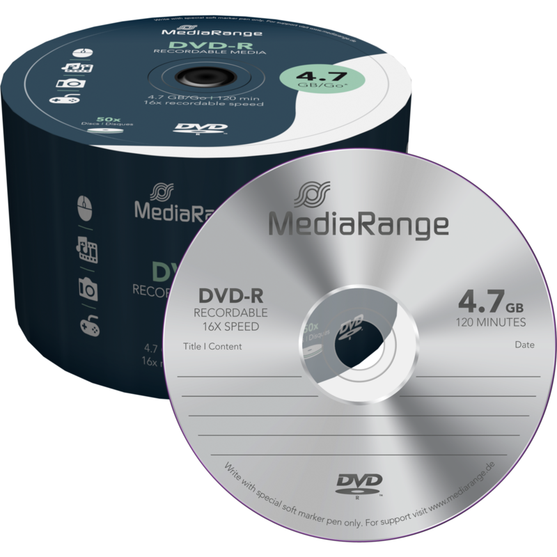 MediaRange DVD-R 4,7 GB DVD-Rohlinge, 16fach, 50 Stück