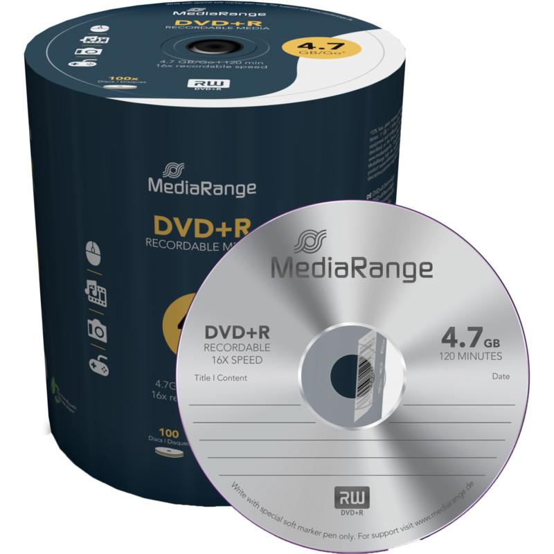 MediaRange DVD+R 4,7 GB DVD-Rohlinge, 16fach, 100 Stück