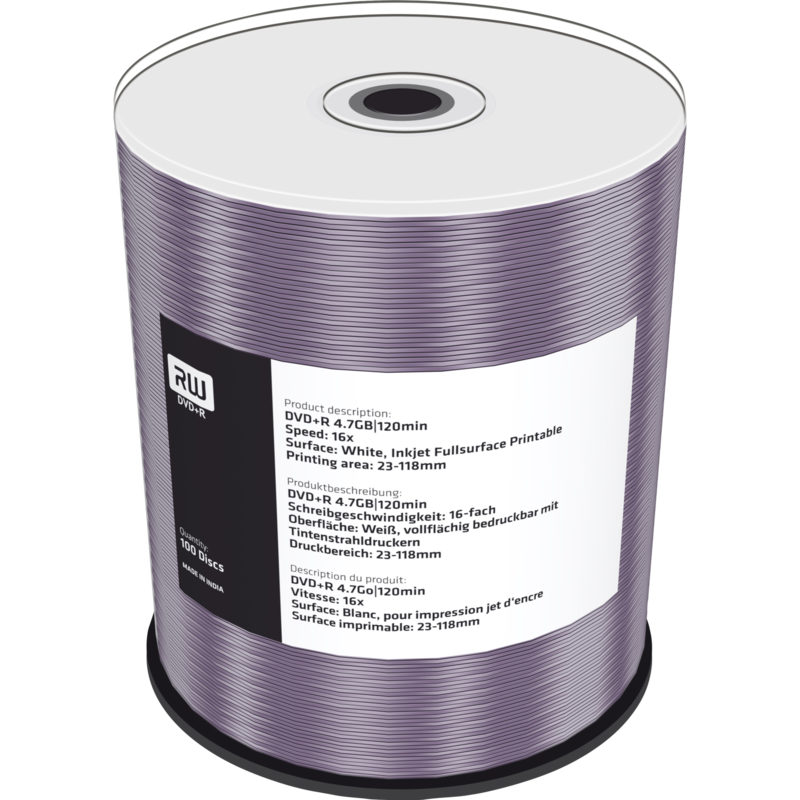 MediaRange DVD+R 4,7 GB DVD-Rohlinge, 16fach, 100 Stück, bedruckbar