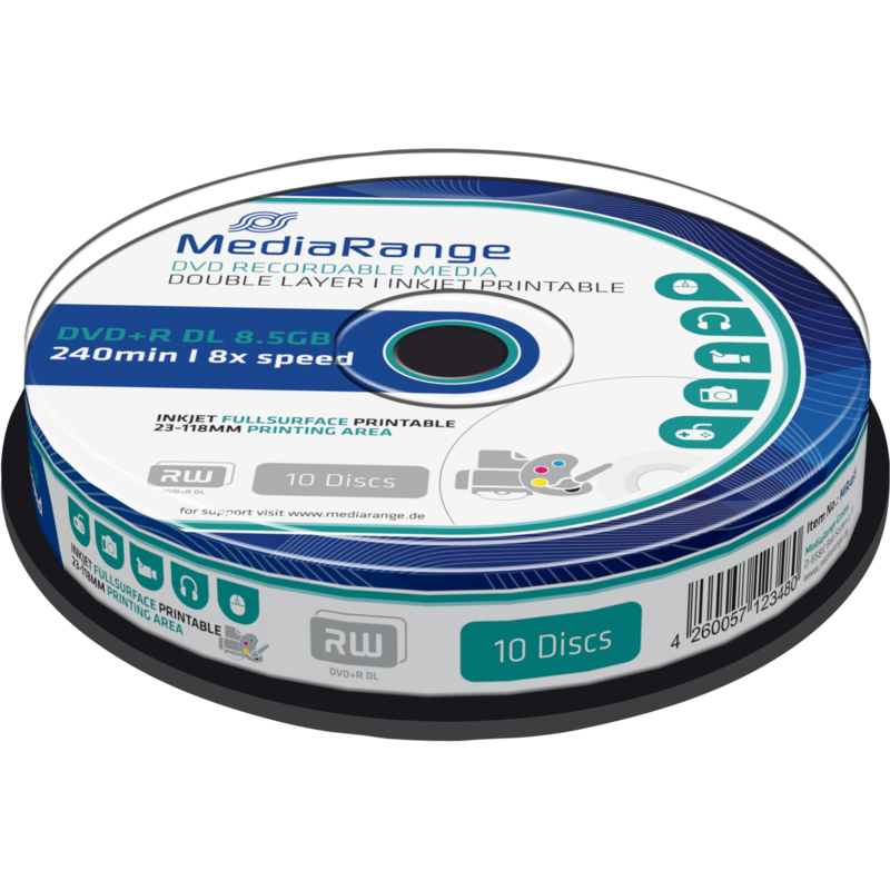 MediaRange DVD+R DL 8,5 GB DVD-Rohlinge, 8fach, 10 Stück, bedruckbar