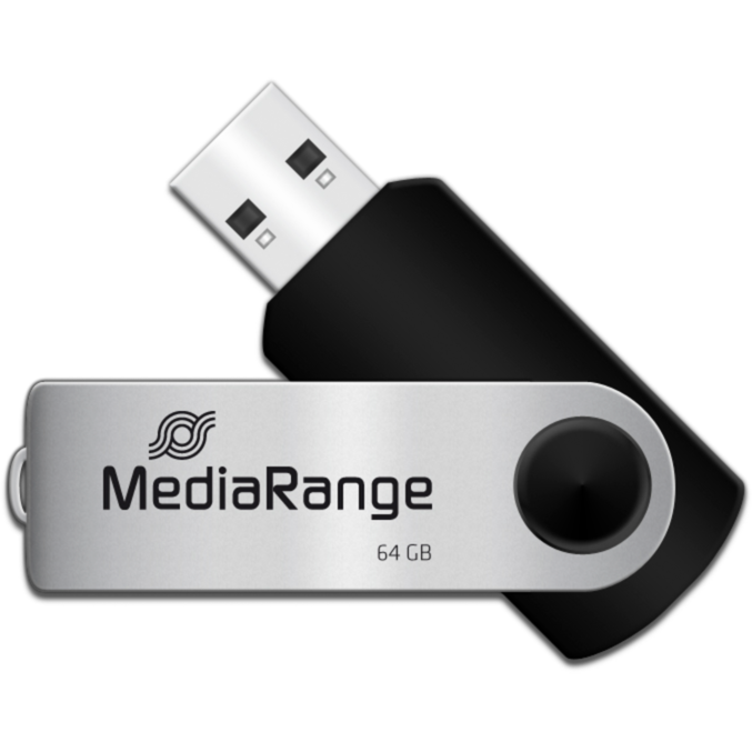 MediaRange Flexi-Drive 64 GB USB-Stick, schwarz/silber, USB-A 2.0