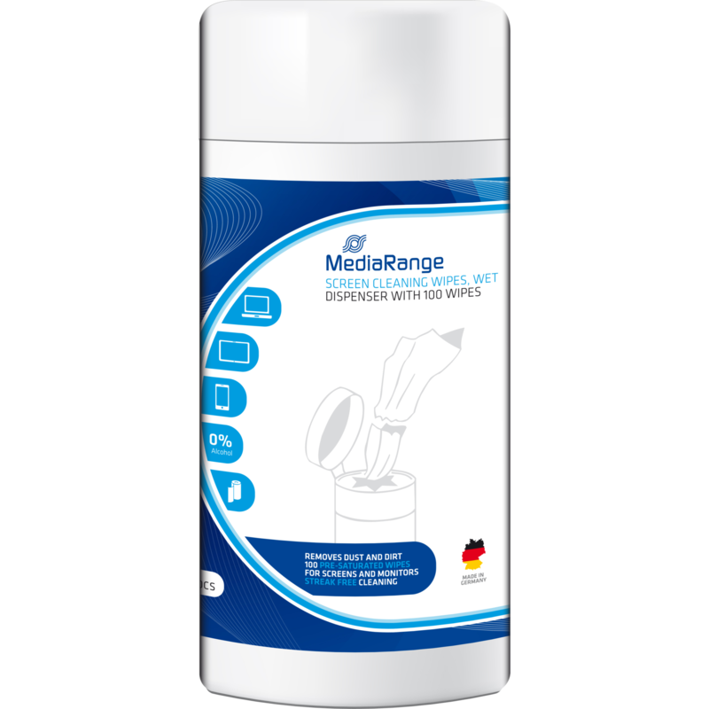 MediaRange Bildschirm Feuchttücher Reinigungstücher, 100 Stück