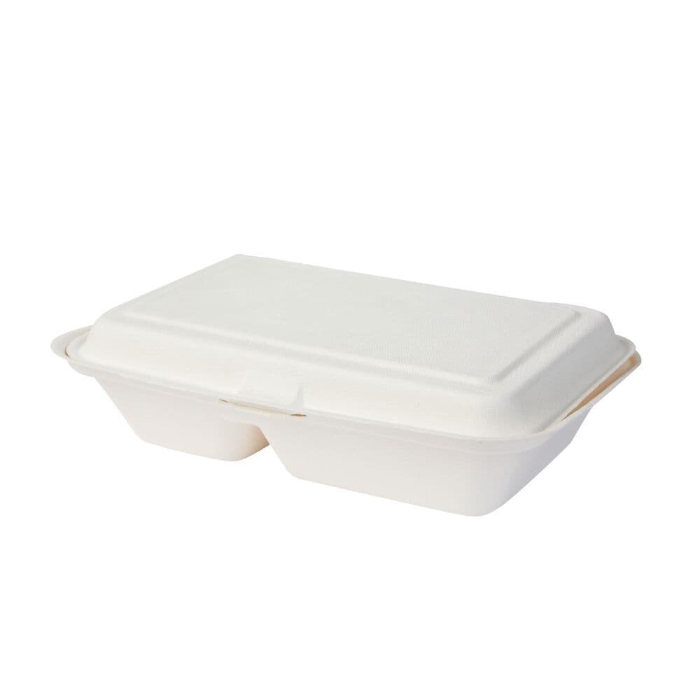Verpackung Fast Food Zuckerrohr Menübox, 2-geteilt, 23 x 15,5 x 8,1 cm, 50 Stk/Pkg | Verpackungsmaterial, Verpackung, Verpackungen
