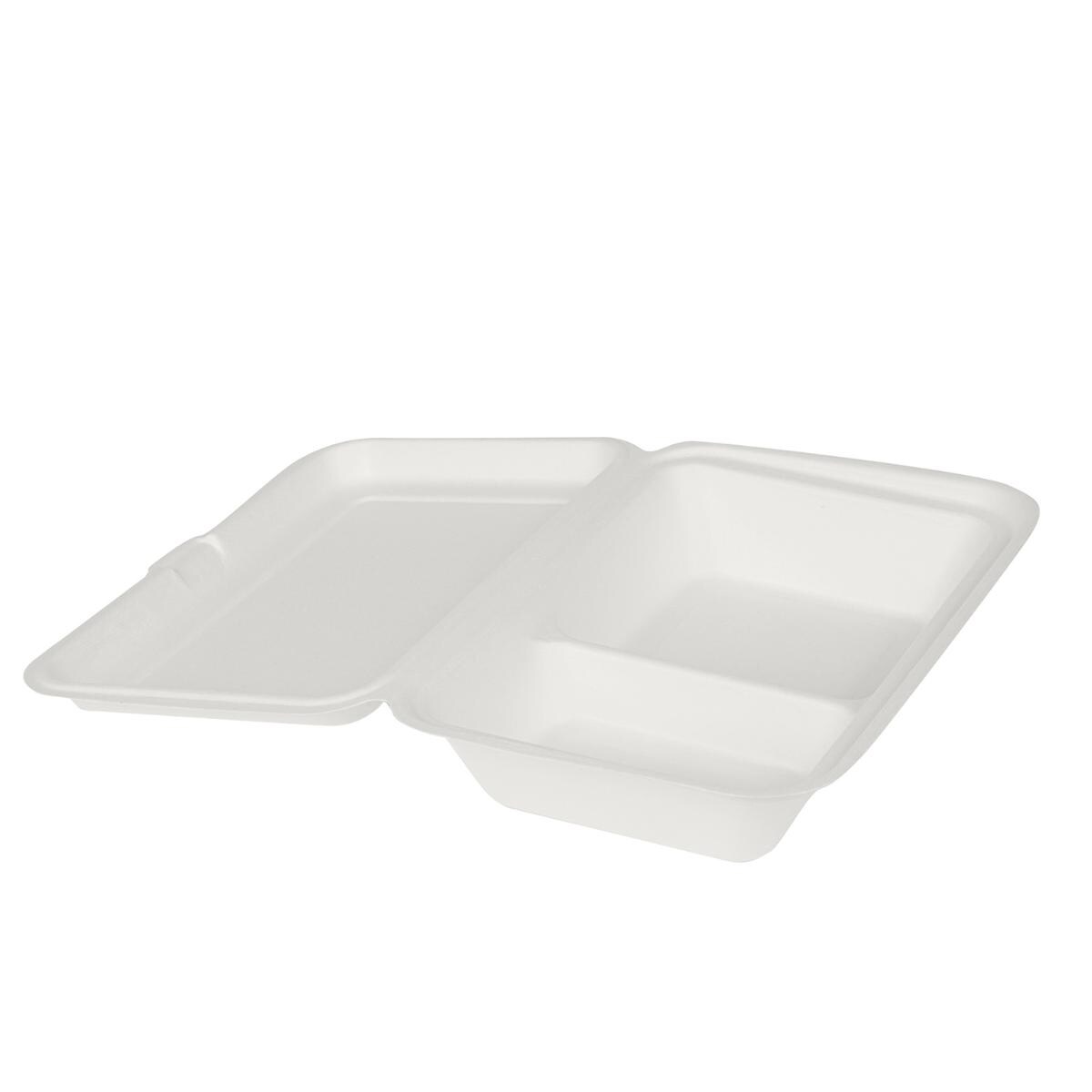 Zuckerrohr Menübox 2 - geteilt - 23 x 20,5 x 7 cm, 50 Stk / Pkg | Menübox Zuckerrohr, Zuckerrohr Menübox, Menüboxen Bio, Einweggeschirr Zuckerrohr