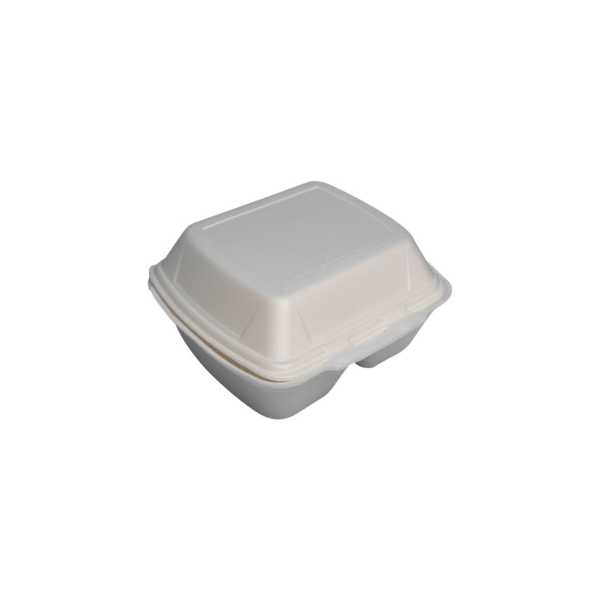 Zuckerrohr Menübox 2 - geteilt - 23 x 20,5 x 7 cm, 50 Stk / Pkg | Menübox Zuckerrohr, Zuckerrohr Menübox, Menüboxen Bio, Einweggeschirr Zuckerrohr