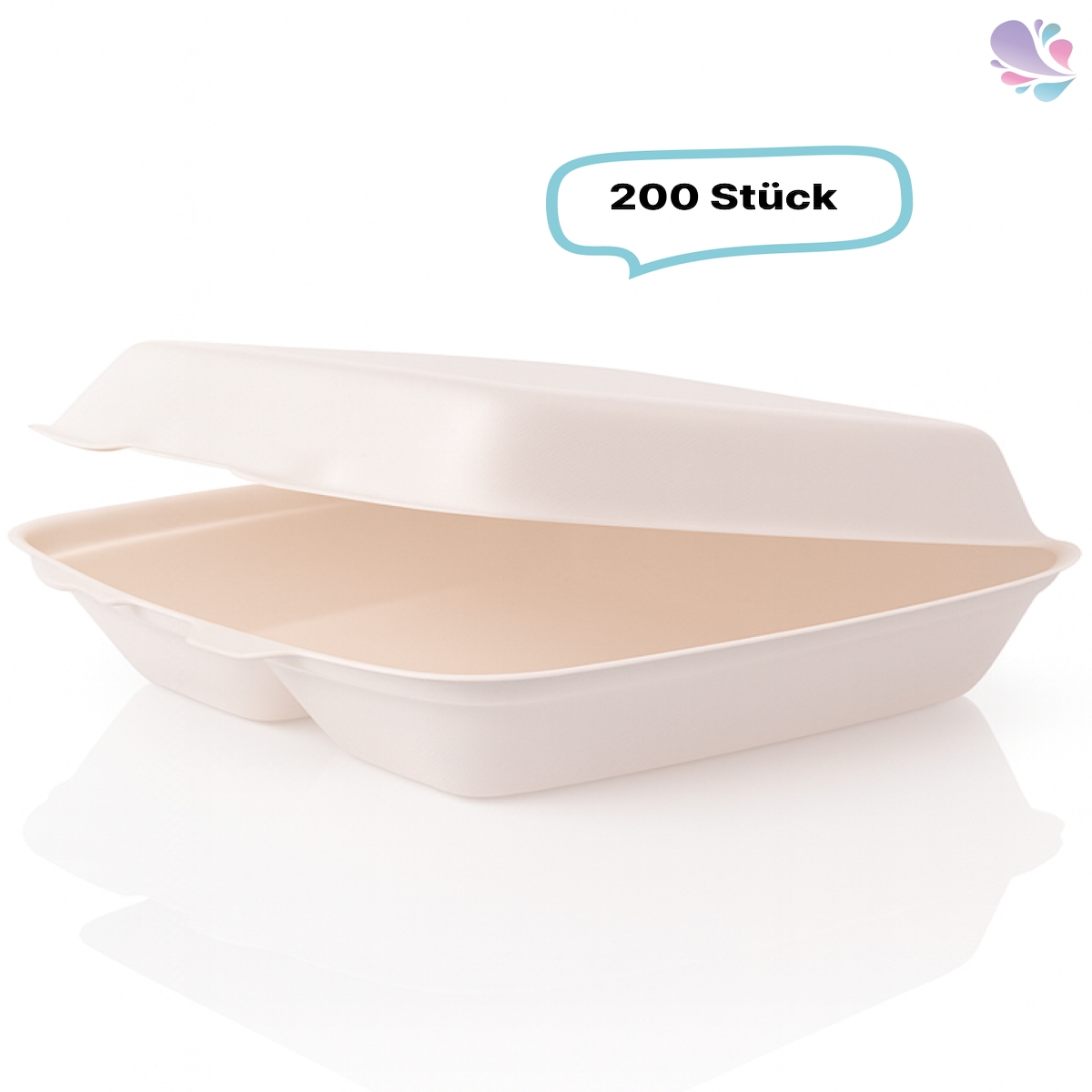 Nette 200 Stück Bagasse Menüboxen weiß 2-geteilt 240x195x72mm