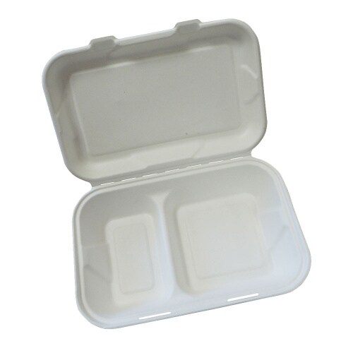Zuckerrohr Menübox 2 - geteilt - 23 x 15,5 x 8,1 cm, 50 Stk / Pkg | Menübox Zuckerrohr, Zuckerrohr Menübox, Menüboxen Bio, Einweggeschirr Zuckerrohr