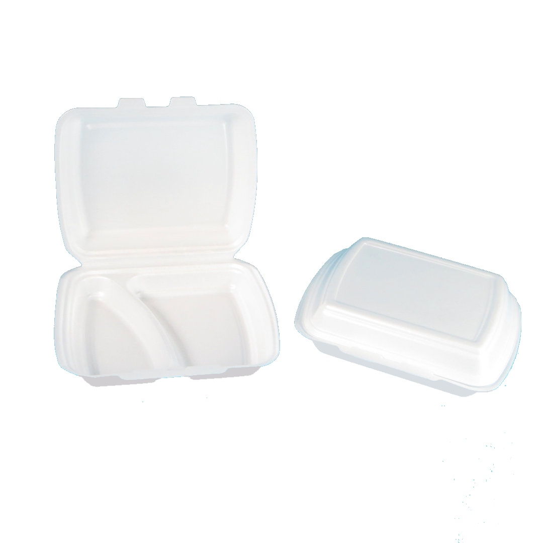 PAPSTAR Menüboxen mit Klappdeckel, XPS 2-geteilt 7,5 cm x 24,3 cm x 20,8 cm