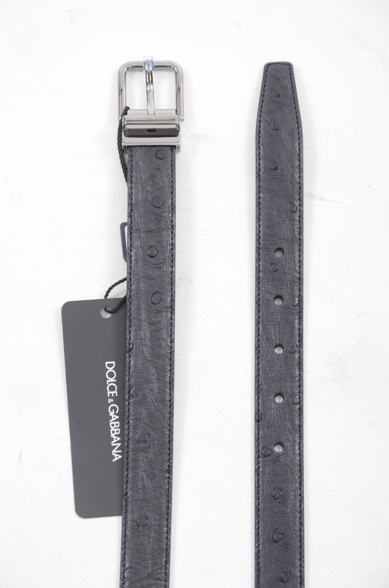 Dolce & Gabbana Men's Black Exotic Skin Pattern Silver Buckle Belt (Ceinture à boucle argentée)