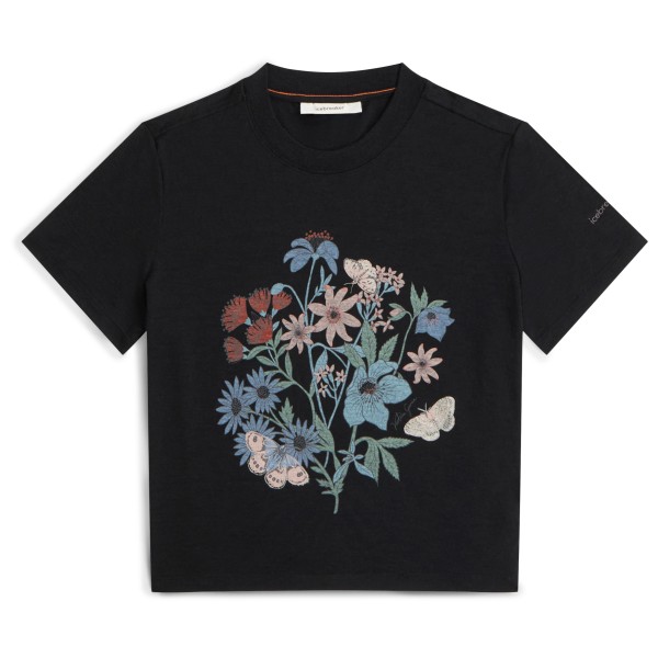 Icebreaker Merino 150 Tech Lite S/S Crop NZ Flora Merinoshirt Damen (Gr M |schwarz)
