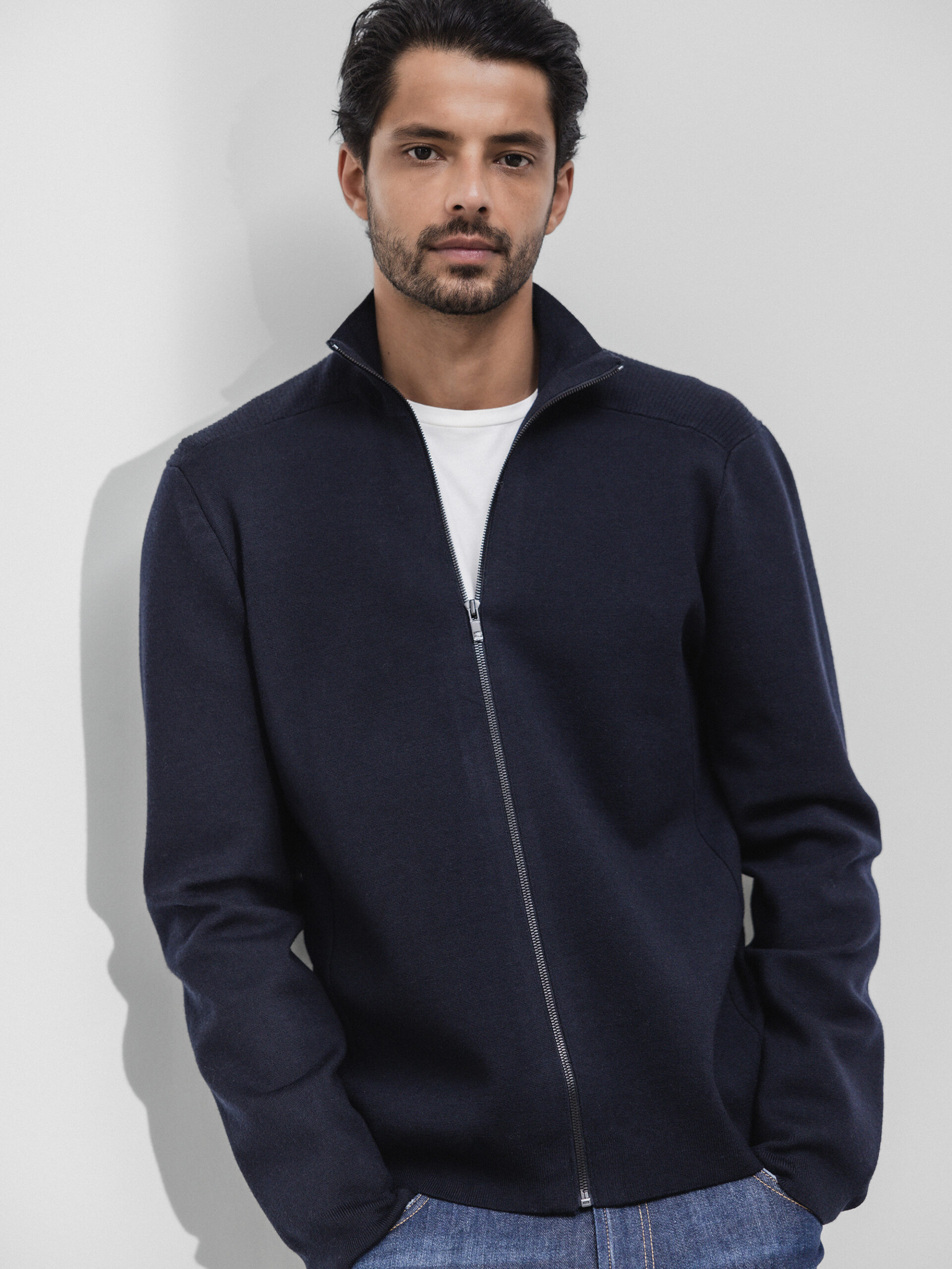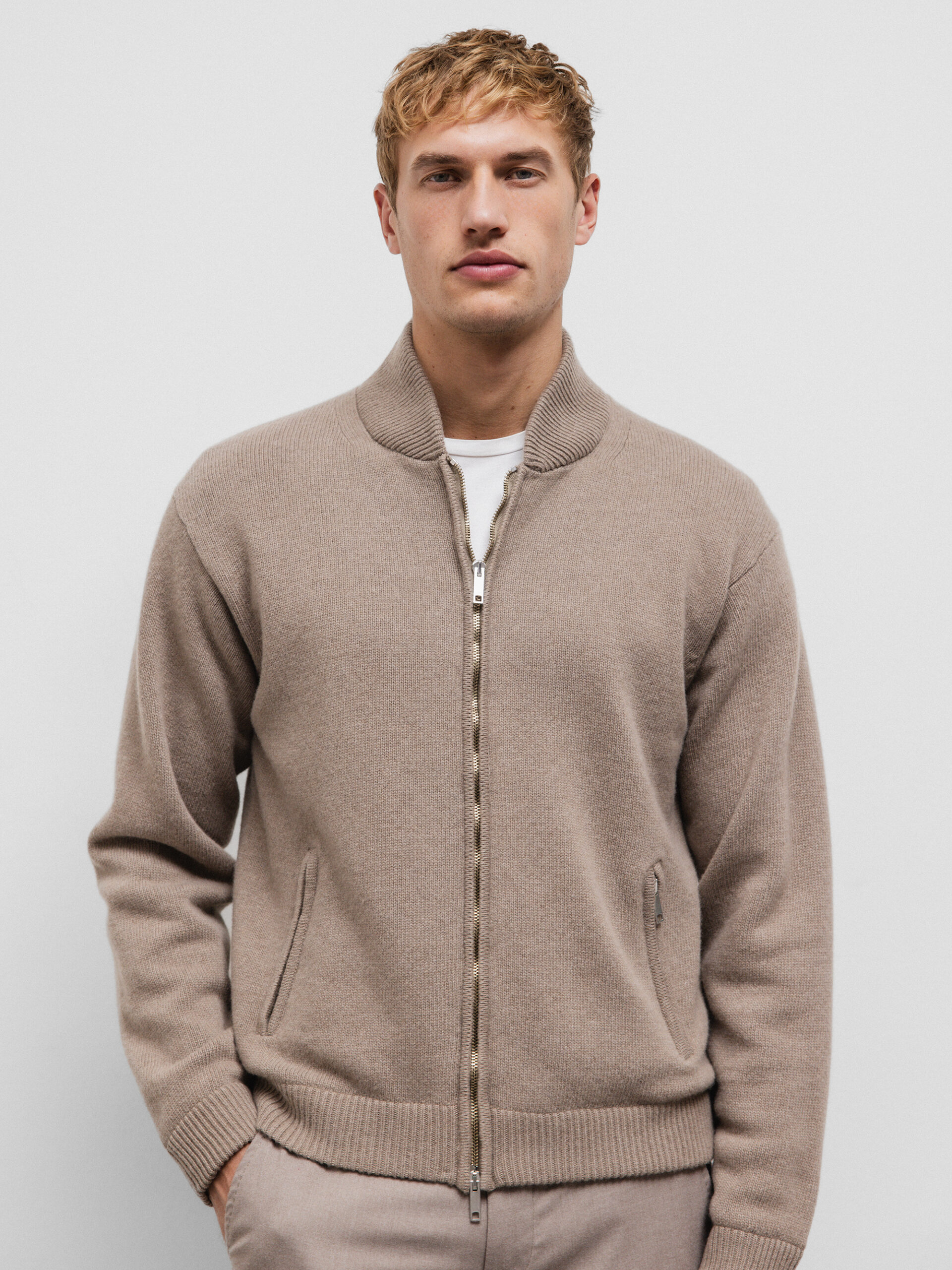 Herren Maerz Strickjacke Beige Regular Fit Cardigan / Zip-cardigan / Strickjacke mit reißverschluss maschinenwaschbar (Superwash) Merinowolle Casual,