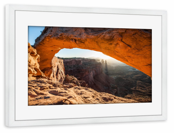 Poster mit Rahmen weiß "Mesa Arch bei Sonnenaufgang" artboxONE - Natur,Reise / Länder - Mesa arch,National park,Canyon