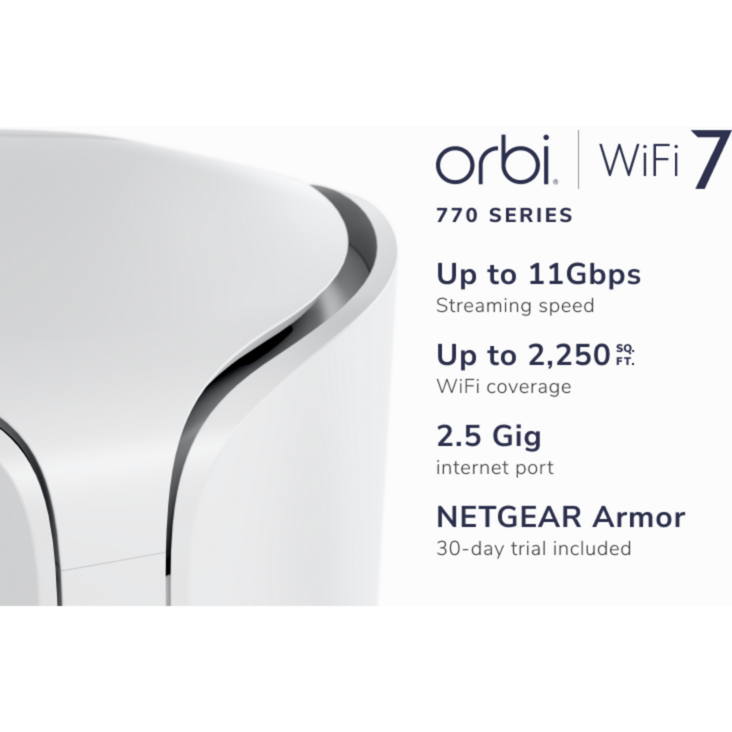 NETGEAR Orbi 770 Serie Tri-Band WiFi 7 Mesh-Netzwerksystem (RBE772) – Router + 1 Satellit-Repeater, Sicherheitsfunktionen, bis zu 11 Gbit/s, Abdeckung
