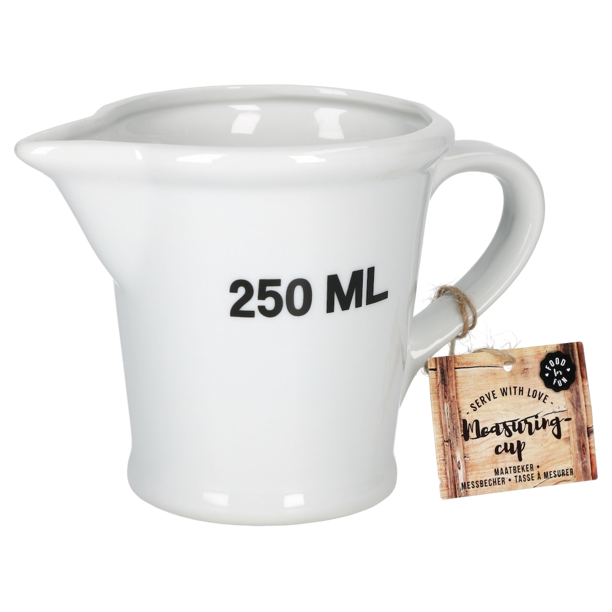 Messbecher 250ml Porzellan weiß 10,5 x 9,5 cm Messkanne Ausgießer Maßangaben 50ml Schritte