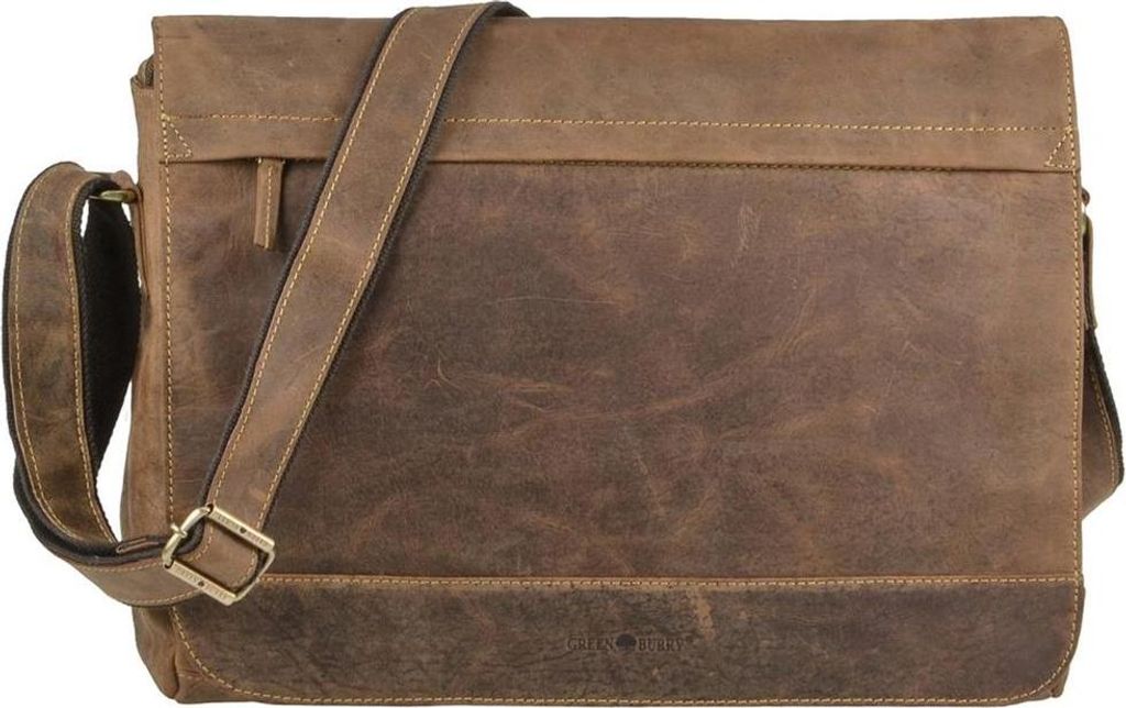 Greenburry Umhängetasche Leder 35x26cm für Damen Herren braun Messenger Bag Schultertasche 1650A-25