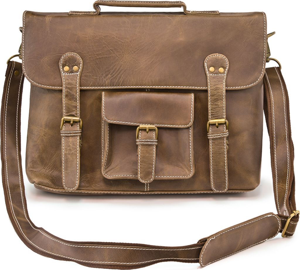 BORELLA Herren Umhängetasche Leder Braun Vintage Messenger Bag 36x31cm